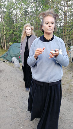In this movie I wanted to explore and experiment with the way choreography could be used and interlaced in a narrative short movie. I wanted the movements to have a purpose in the way that they would play a role in bringing the story forward. My aim was to have the choreography to feel genuine and like a natural part of the story. Therefore, to be able to focus on that, we chose to start with a quite simple story. I was inspired by different ritual movements from all over the world when creating the demons dance. I created symbols with the hands that I wanted to express a certain power and force coming from the demons. I think the hand movements add a little extra tension and are details that fit the film medium perfect. There is also something very unpleasant when you can’t see a person's face. Why I chose thriller as genre is just because I find it very thrilling and got excited by the challenge to create something scary with dance as the main expression.